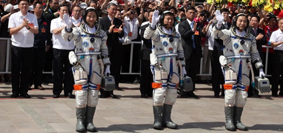 이날 발사된 선저우 9호에는 징하이펑(景海鵬), 류왕(劉旺), 류양(劉洋·여) 등 3명의 우주인이 탑승했으며, 발사 목적은 ‘유인 우주 도킹 기술’을 확보하기 위한 것이다.