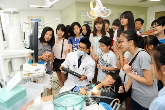 ▲ 서울 동대문구청 관내 학생들이 학생들이 경희의료원을 찾아 치과의사 직업체험을 하고 있다. 고병진 기자