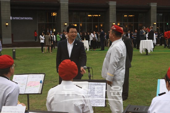▲ 김진선 2018평창동계올림픽 조직위원장은 6월 28일 저녁 만찬에서 축하공연을 하는 강릉그린실버악단을 찾아 격려하기도 했다. 이번 디브리핑은 IOC의 지식관리 프로그램의 하나로 러시아 소치 동계올림픽 조직위원회가 대회를 개최하면서 얻은 지식과 경험을 차기 올림픽 개최지에 전수(傳受)하는 행사이다.