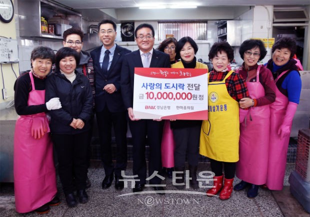 BNK금융그룹 경남은행은 거동이 불편한 소외계층 구호의 일환으로 한마음의 집 무료 급식소에 '사랑의 도시락 성금'을 기탁했다.