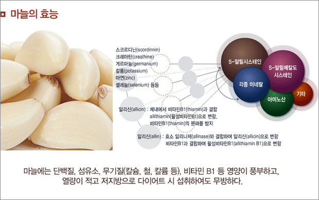 또한 마늘에는 강한 살균작용이 있기 때문에 기생충 구제와 각종 균의 발육을 억제하는 작용도 합니다.