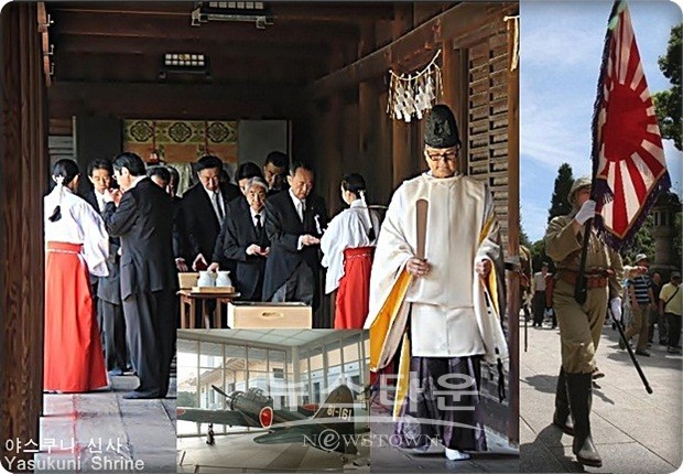 야스쿠니 신사에는 A급 전범 14위가 합사되어 있어 한국, 중국 등 이웃국가들이 신사 참배를 강력히 비난해왔다.