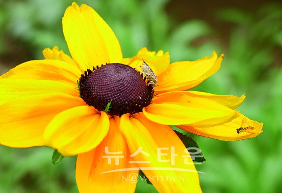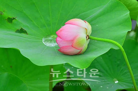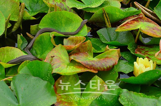 곤충에서 뱀까지 빗물에 젖은 연꽃