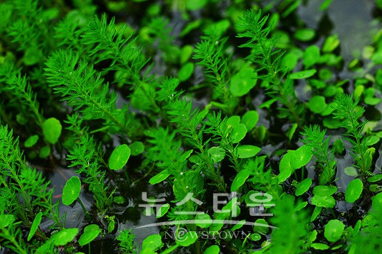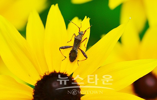 원주시 호저면 무장리 도연사 앞 작은 연못을 살펴보니 여러가지 곤충들이 비를 피해 있다.