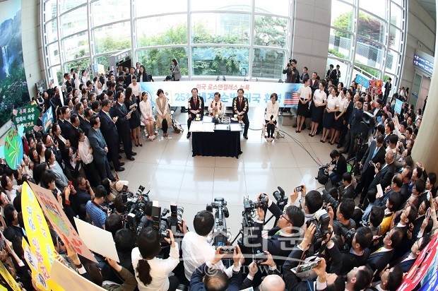 바쁘신데 공항까지 나와 주셔서 감사합니다. 우리 평화의 사절단은 맡은 사명을 다하기 위해 최선을 다하고 있습니다. 이번 25차 평화순방은 미국의 몇 군데를 방문했습니다. 저희가 하는 일을 지구촌 전쟁종식 세계평화를 이루는 일입니다. 평화는 인류의 미래를 위해 꼭 해야 하는 일입니다. 이번 순방에서 만나는 사람마다 모두 세계 평화에 동의하고 협조했습니다. 분단국가인 우리나라가 다른 나라보다 어려움을 겪고 있으므로 평화에 동의해야 할 것입니다.