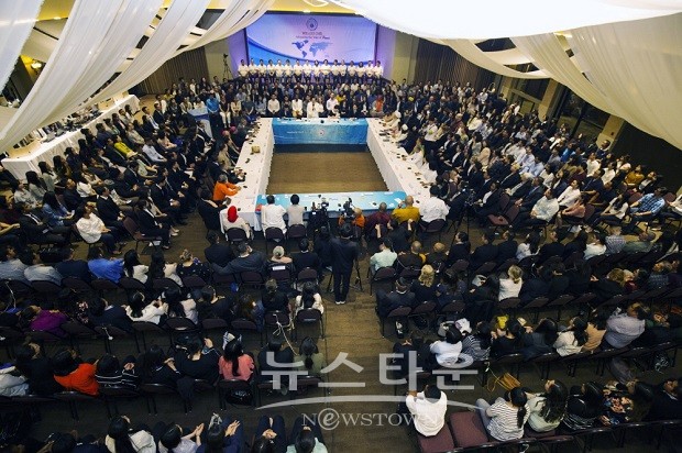 ▲ 5월 1일 저녁(현지시간) 켈리포니아 롱비치 더 그랜드에서 열린 HWPL 지도자모임 광경. ⓒ뉴스타운