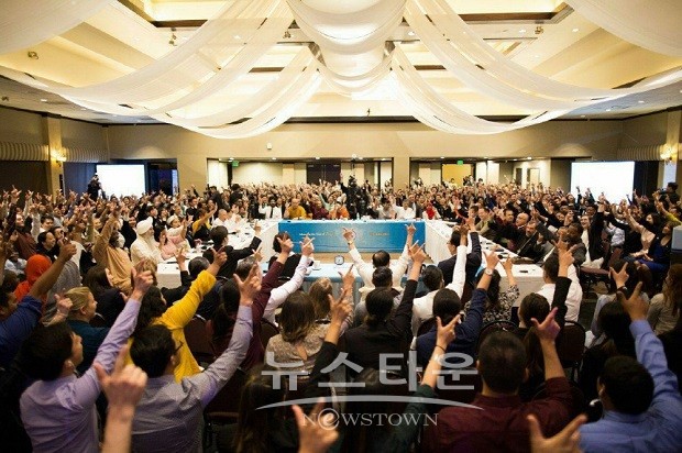 ▲ 지난 5월 1일 저녁(현지시간) 켈리포니아 롱비치 더 그랜드에서 열린 HWPL 지도자모임 현장. ⓒ뉴스타운
