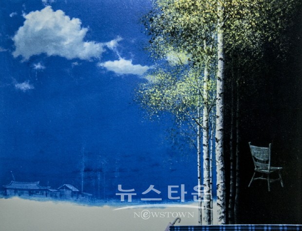 작가는 르네 마그리트의 ‘낯선 이미지’와 ‘이미지의 배반’을 적절하게 활용하면서 ‘풍경속의 풍경’과 ‘풍경 뒤의 풍경’으로 밝은 꿈과 희망의 풍경 이미지는 초현실주의 방식만의 꿈꾸기가 아니라 현실에 근거를 둔 공간적이고 시간적인 차원에서 전개된다.