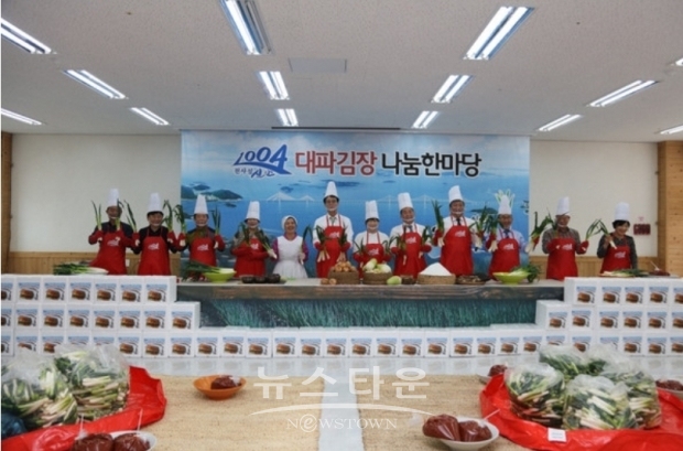 신안군(군수 박우량)은 2월 28일 임자면 주민복지센터에서 ‘1004섬 신안대파 김장나눔 한마당’을 개최하였다.