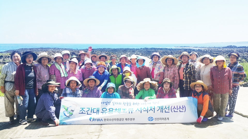 한국수산자원공단(FIRA, 이사장 신현석) 제주본부(본부장 임동현)는 제주연안 조간대 갯녹음 극복을 위하여 올해 바다숲 조성해역인 제주시 한경면 고산리와 서귀포시 성산읍 신산리에 어촌계와 협업을 통하여 유용해조류의 서식처 개선을 위한 갯닦기를 추진하였다.