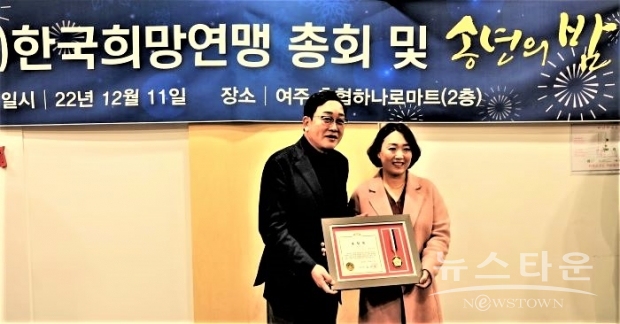 또 윤진형 중앙회장은 이충우 여주시장, 김선교 국회의원, 서광범 도의원에게 한국희망연맹 감사장을 전달했다.