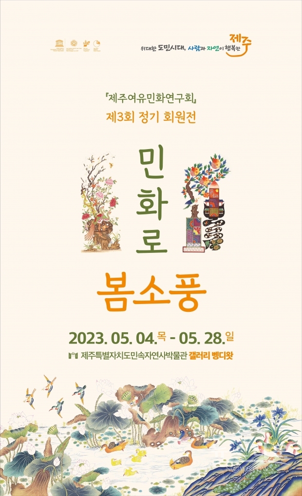 제주특별자치도 민속자연사박물관(관장 박찬식)은 "민화로 봄소풍"정기 회원전을 갤러리 벵디왓에서 4~28일 개최한다.