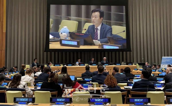 ▲ 조규일 진주시장, UN본부에서 K-기업가정신 확산 기조연설