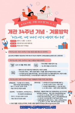 인천광역시교육청주안도서관은 개관 34주년과 겨울방학을 맞아 인천시민을 대상으로 다채로운 독서문화 행사를 5일부터 28일까지 운영한다.