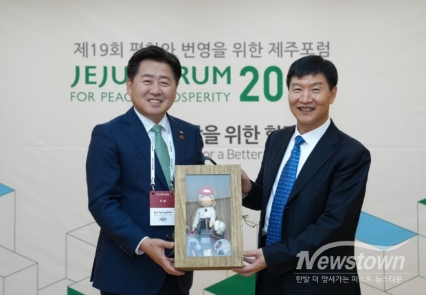 오영훈 제주특별자치도지사와 류샤오밍(刘晓明) 중국 하이난성장은29일 오후 제19회 평화와 번영을 위한 제주포럼에서 만나 문화예술·경제·신산업·인적 교류 등 다양한 교류협력 방안을 모색했다.