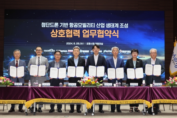 이날 협약식에는 이강덕 포항시장과 김영준 ㈜파블로항공 대표이사, 김응욱 ㈜이스온 대표이사, 김종규 포스텍 대외부총장, 박혜경 한동대학교 학사부총장, 이상모 포항문화재단 대표이사, 배영호 포항테크노파크원장, 송경창 경북경제진흥원장 등 30여 명이 참석했다.