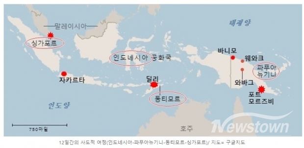 87세라는 허약한 프란치스코 교황의 12일간의 아시아 사도적 여정(인도네시아, 파푸아 뉴기니, 동티모르, 싱가포르)은 동양(아시아)을 바라보는 세계 교회로서는 대담한 시도이자 힘찬 발걸음으로 여겨진다. 미국의 뉴욕타임스(NYT)는 13일 교황의 아시아 역방(歷訪)을 이같이 요약했다.