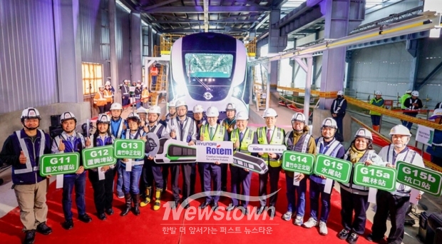 현대로템이 제작한 대만 타오위안 그린라인 무인경전철 실물이 현지에서 최초로 선보였다.