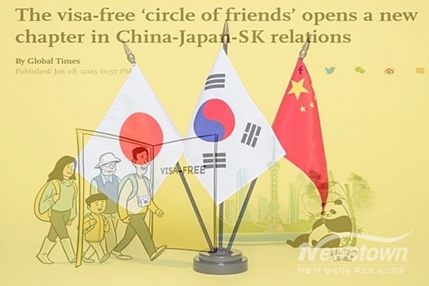 신문은 중국의 무비자 정책(visa-free policy)은 “친구들의 서클(circle of friends)‘이라는 한·중·일 관계의 새로운 장을 열었다고 자평했다. 이 무비자 정책은 복잡한 비자 신청 절차를 간소화할 뿐만이 아니라 3국의 시민들이 서로 더 자유롭고 자주 교류할 수 있도록 해준다.