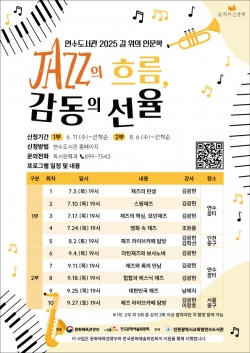 인천광역시교육청연수도서관은 문화체육관광부 주최, 한국문화예술위원회 주관의 2025년 ‘길 위의 인문학’ 공모사업에 선정돼 ‘재즈의 흐름, 감동의 선율’을 주제로 프로그램을 운영한다.