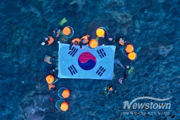 이날 물질 시연에는 제주․울릉 해녀 10여 명이 참여했다. 해녀들은 숙련된 솜씨로 해산물을 채취하는 물질 시연을 벌이고, 바다 위에 대형 태극기를 펼치며 공동체 연대와 해양주권의 의지를 다졌다.