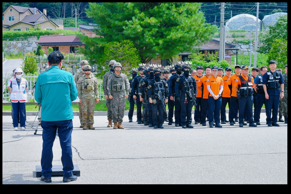 횡성군이 2025년 을지연습의 일환으로 20일 한국수자원공사 횡성원주권지사에서 ‘국가중요시설 테러 대응 훈련’을 실시한다고 밝혔다. 이번 훈련은 실전에 가까운 시나리오를 적용해 복합적인 테러 상황에 대한 대응 역량을 강화하는 데 초점을 맞췄다.