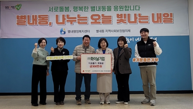 이에 이유미 별내행정복지센터장은 “지역사회의 어려운 이웃을 위해 사회 공헌 활동에 참여해 주신 화이날기업에 감사드린다”며 “앞으로도 복지 사각지대 등 어려운 이웃을 살펴 모두가 행복한 별내동을 만들겠다”고 전했다.