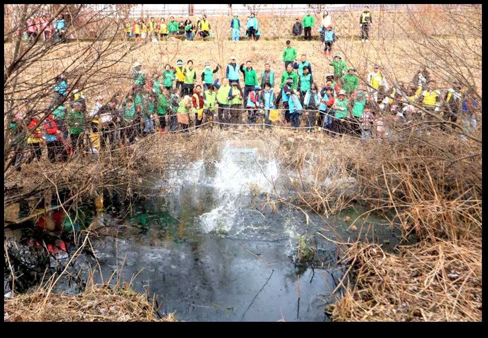 하천 자정 능력을 높이기 위해 주요 오염 우려 지점에 유용미생물(EM) 흙공과 EM수를 투입하는 한편, 본격적인 강변 정화 작업도 이어갔다.